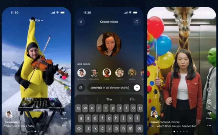 The big release of last week. AI-native short video. A social feed of model-generated clips with selfie “cameos” so friends can put your likeness in skits and remixes. We have seen a lot of Sora videos that went viral, not just because of the insane quality but also because of the social element to them. “Remixing” famous people, or friends, has shown to be pretty sticky so far.